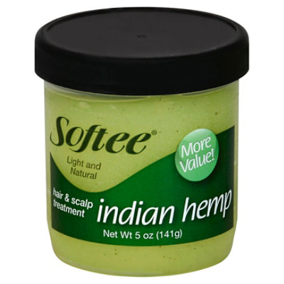 Softee indian hemp hair and scalp treatment. Provides body and gloss to brittle, dry hair for natural softness and manageability.
